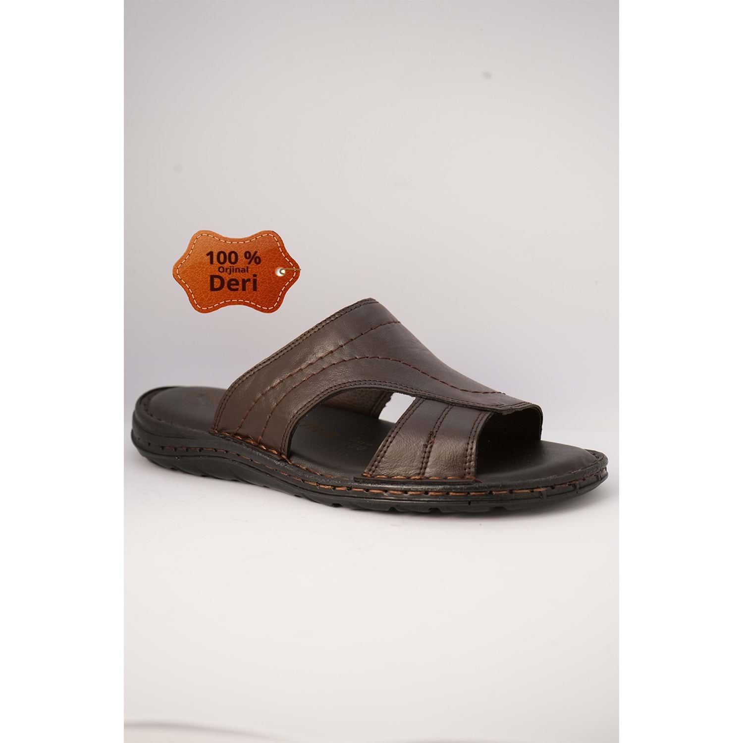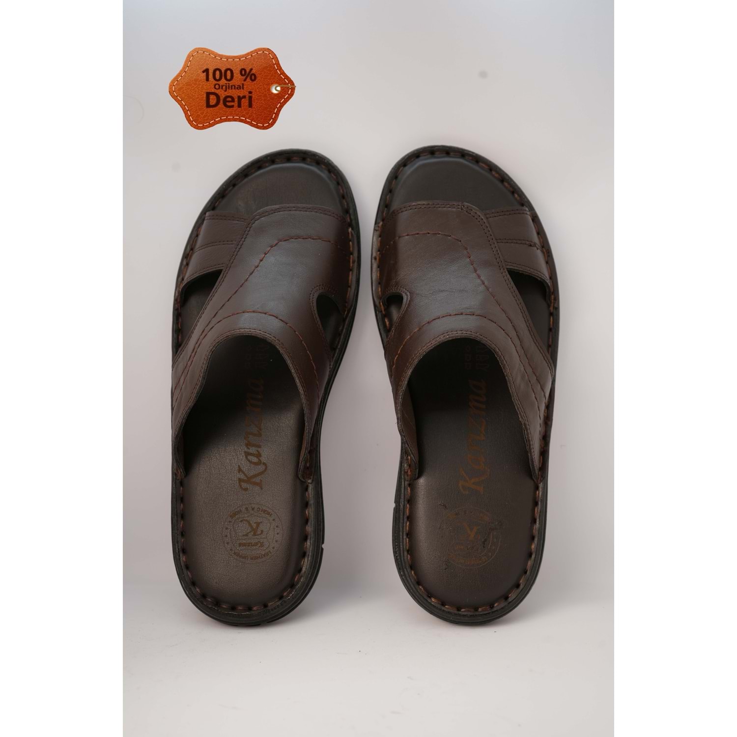 Kristal Kr.98 Anatomik Taban Hakiki Deri Erkek Terlik - Kahverengi - 40