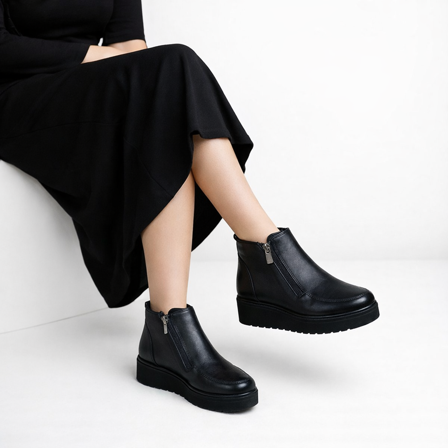 Kaymaz dış taban: Çeşitli zeminlerde güvenli adım sağlar. Esnek ama destekli yapıya sahip taban: Ayak doğal şeklini korur, yürüyüşü konforlu hale getirir. Kalın taban profili: Yalıtım sağlar ve zeminden gelen darbelere karşı ayakları korur.geniş burun kısmı: Parmaklara doğal hareket alanı sağlar. Ayak bileğini destekleyen yükseklik: Burkulmaları önler ve stabiliteyi artırır. Kolay giyilip çıkarma: Fermuar veya bağcıklı tasarım seçenekleriDoğal deri üst yüzey: Nefes alabilir, dayanıklı ve uzun ömürlüdür. Suya ve dış etkilere dayanıklı: Deri işlemeleri sayesinde hafif su iticilik sağlar. Sağlam dikiş ve işçilik: Tüm bot boyunca dayanıklılığı artırır.