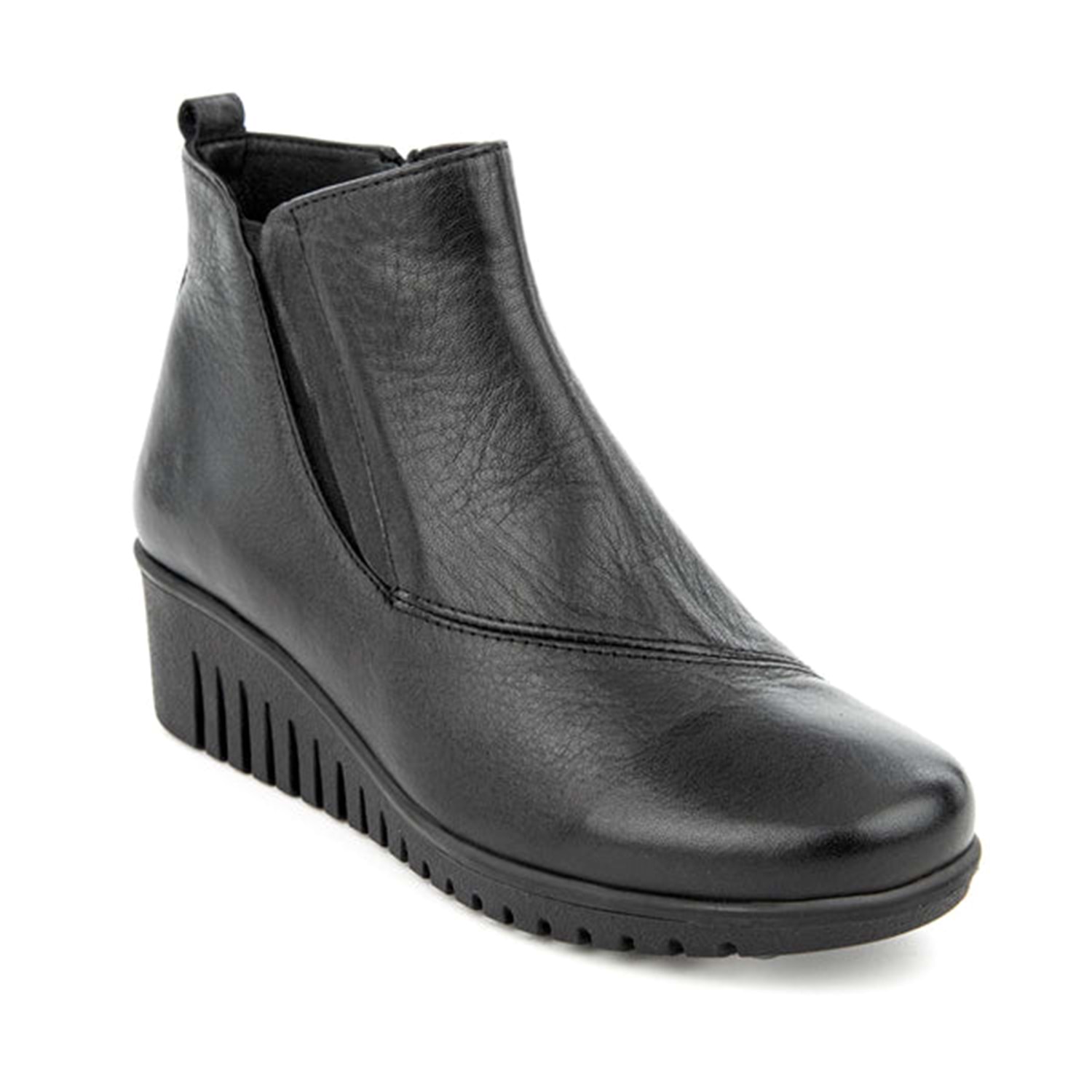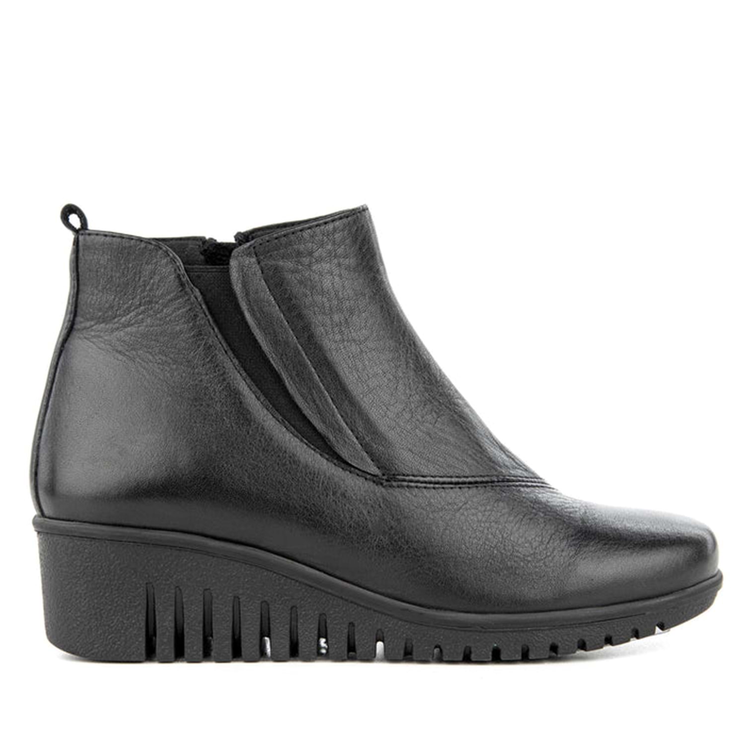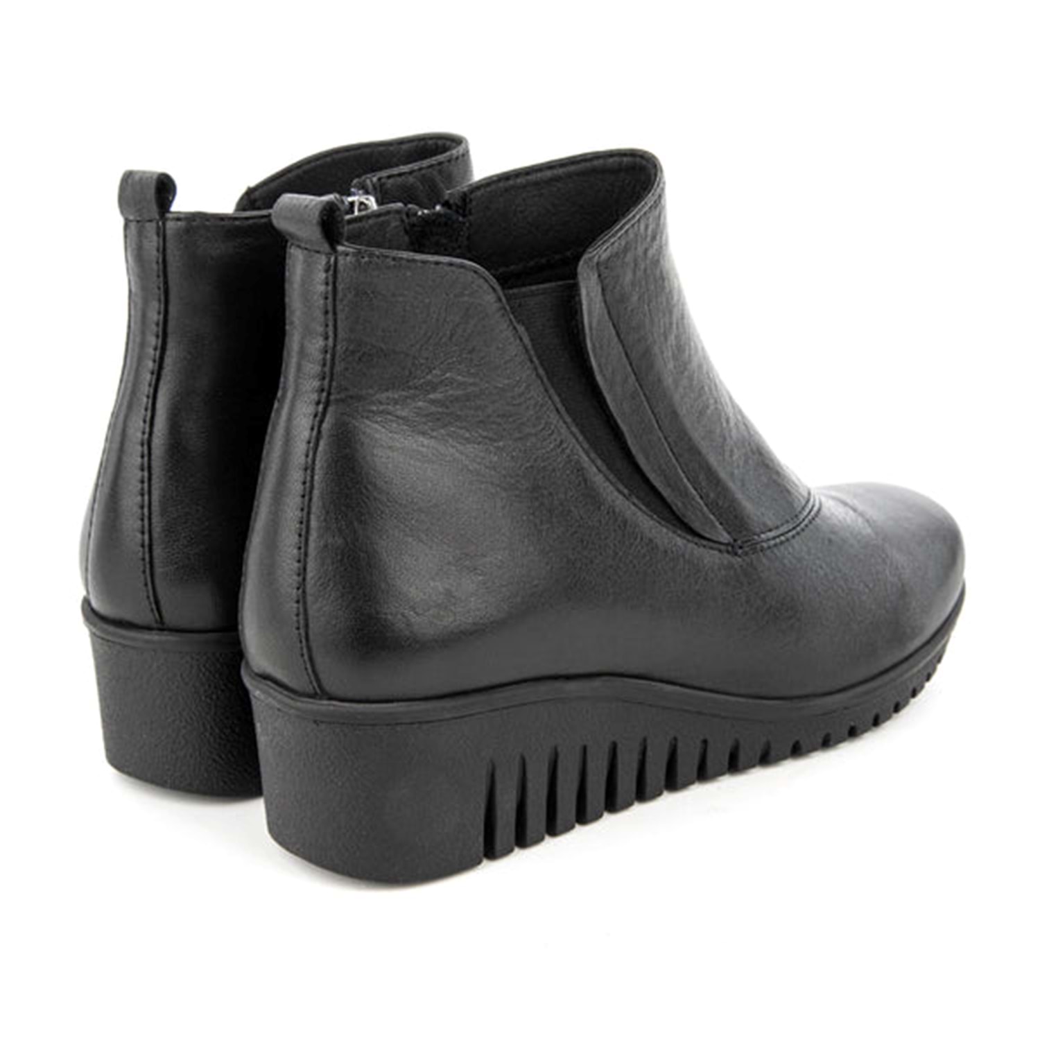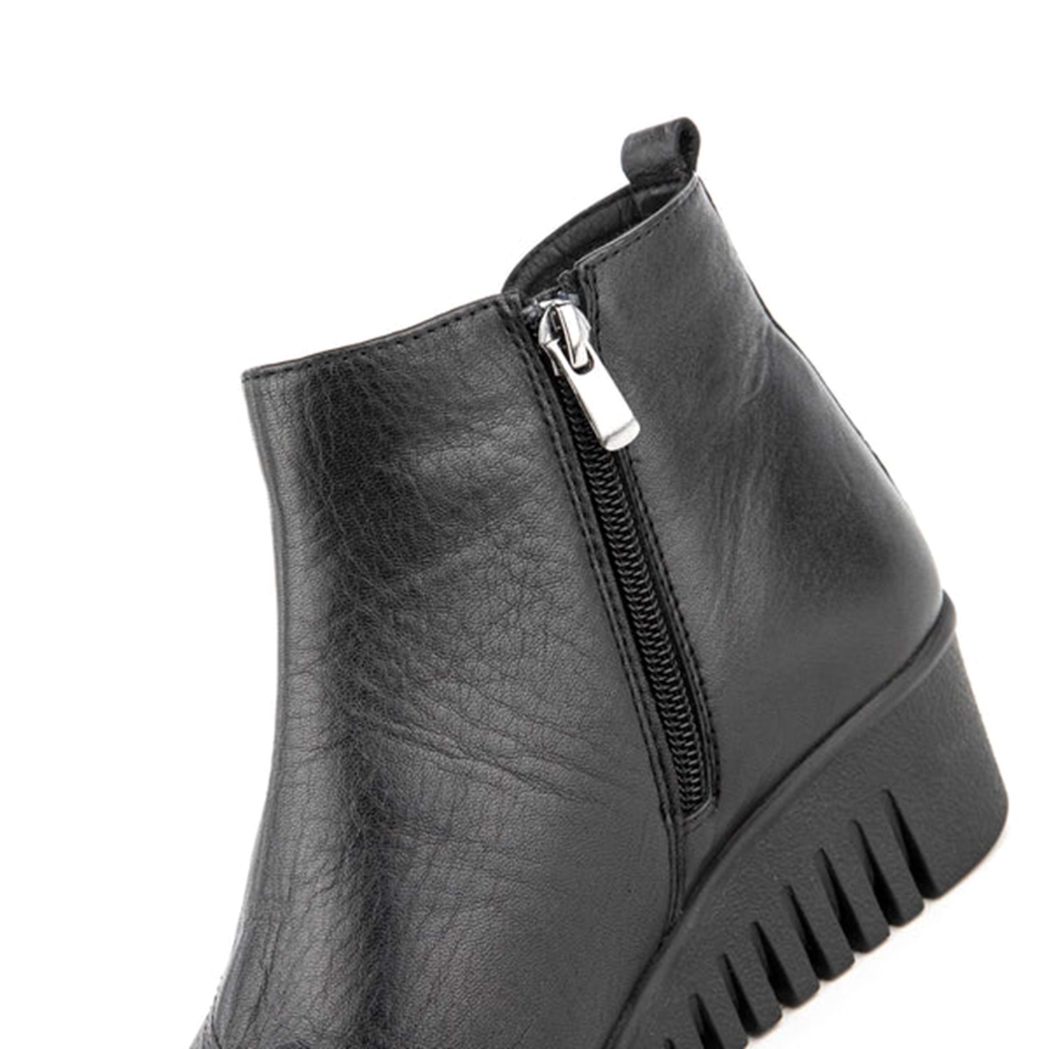 Vücudun temelini oluşturan ayaklar, tüm ağırlığımızı taşır. Ayaklarımızdaki her bir nokta farklı bir özelliğe sahiptir. MUYA 6 Nokta Koleksiyonu bu noktalara gelen basınçları azaltmak üzere tasarlanmıştır. Anatomik yapısı ile MUYA 6 Nokta Koleksiyonu ayak, diz, kalça ve sırt bölümlerini etkileyen bu noktalar üzerindeki yükü hafifleterek baskıyı azaltır. Arka noktalar topuk dikeni problemlerinde aşırı yüklenme hissini ve baskıyı ortadan kaldırır, ağırlığın dengeli dağılmasını sağlar. Ön noktalar ise hem parmaklara hem ayağın ön bölümüne gelen basıncı azaltarak bel ve sırta gelen fazla yükü dengeler. Uzun süre ayakta kalanlar ve bütün gün hareket edenler için ayak ve vücut konforunu artıran bu koleksiyon en doğru seçimdir. Ürün Özellikleri: Üst Malzeme: Hakiki Deri Dış Taban: Termoplastik İç Taban: Suni Deri Astar: Sıcak Astar Topuk Tipi: Dolgu Topuk Topuk Yüksekliği: 4.5 cm Platform Yüksekliği: 1.5 cm Bilek Yüksekliği: 11.5 cm Öne Çıkan Özellik: Anatomik 6 Noktalı İç Taban Menşei: Türkiye